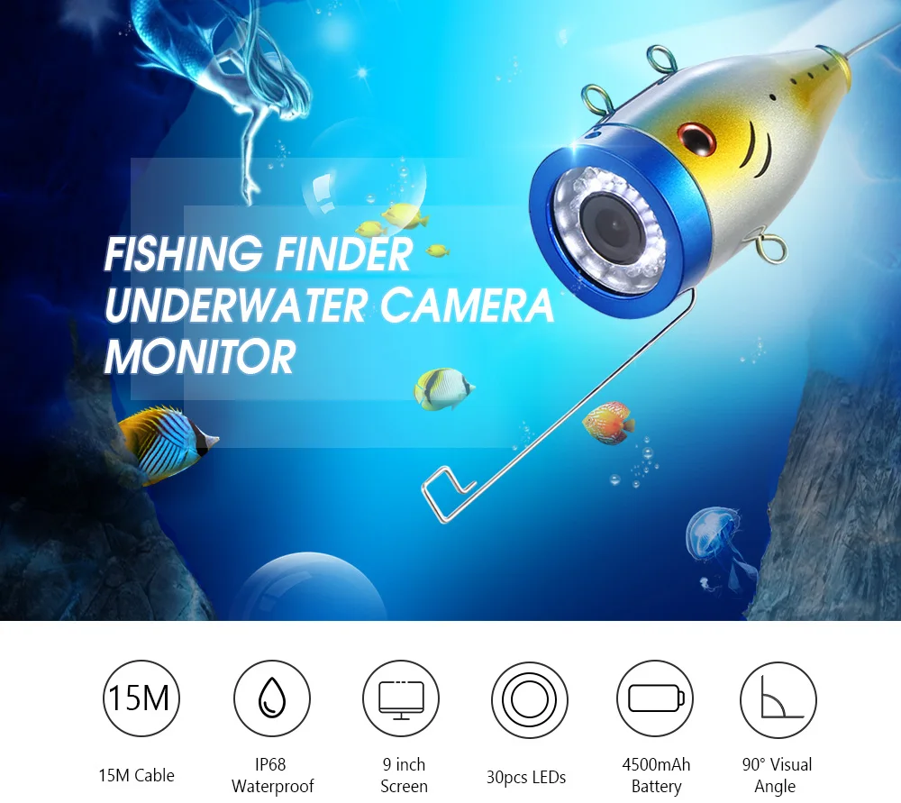 Product Name: Eyoyo-cámara Subacuática De 9 Pulgadas 1000TVL Para Pesca, Buscador De Peces Por Infrarrojos, 15 Uds., LED Blanco + Lámpara De Infrarrojos