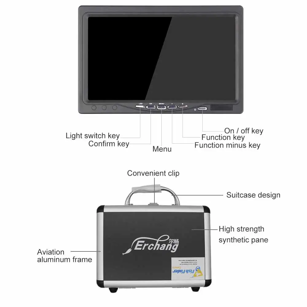 Product Name: Juego De Cámaras De Pesca De 7 Pulgadas, 1200TVL, 4500MA, 1280 X 720PX, HD, Visión Nocturna, Cámara Subacuática Para Buscador De Peces Para Pesca Al Aire Libre