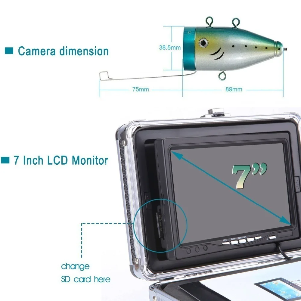 Product Name: SYANSPAN Original/15/30/50 M Fishfinder HD 1000TVL Buscador De Peces Bajo El Agua De Hielo Cámara De Video De Pesca 7 "LCD Monitor 24 LED Blanco