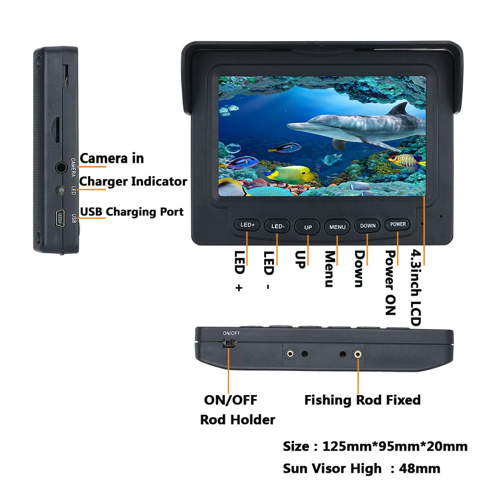 Product Name: Cámara De Pesca Submarina 30M 1200TVL, Monitor De 4,3 Pulgadas, 10 Uds., LED De Visión Nocturna, Cámara De Rueda De Mar De Metal Para Pesca