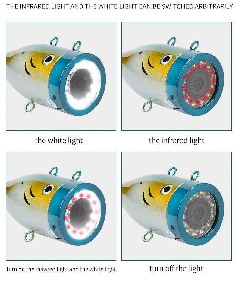 Product Name: Buscador De Peces 15/30/50M DVR HD 1000TVL Subacuática Caza Vídeo Pesca Cámara Para Pesca 7" Monitor 12 Piezas IR + 12 Piezas LED Blanco