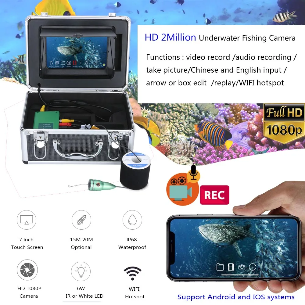 Product Name: Buscador De Peces Pesca Submarina Hielo 1080P Cámara Kit 7 Pulgadas WIFI Inalámbrico 16GB Grabación De Vídeo DVR + 15M 6W LED Río/Mar Pez Cam