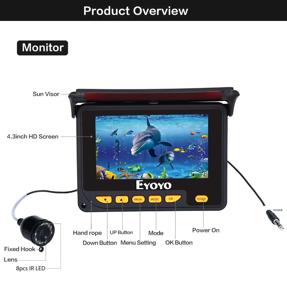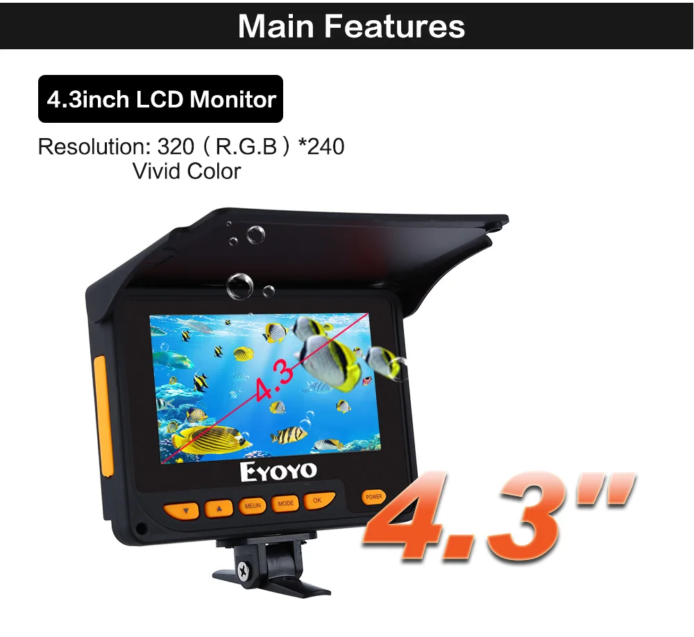 Product Name: Eyoyo-Localizador De Peces Portátil EF05, Cámara De Pesca Submarina De 4,3 Pulgadas, 30M, Foto De Grabador De Vídeo DVR, 150 Grados, 8 Uds., LED IR