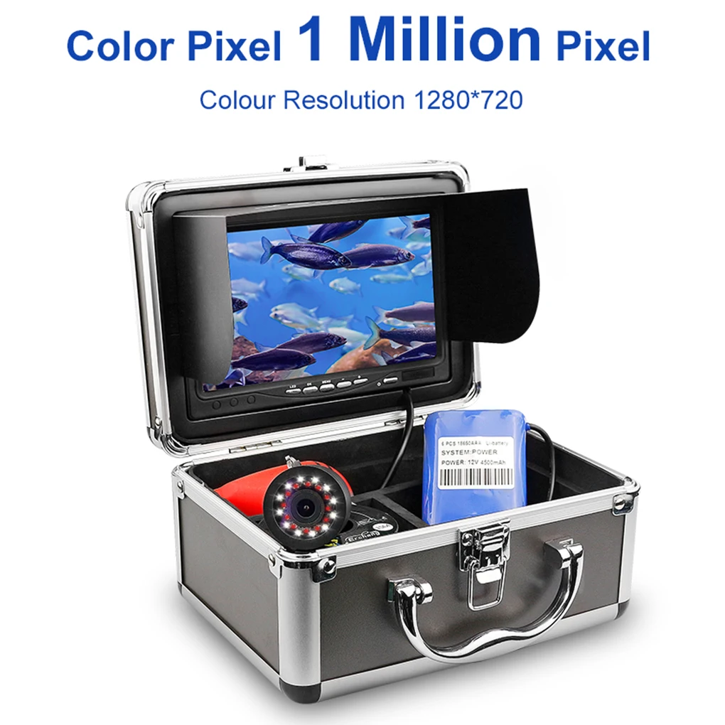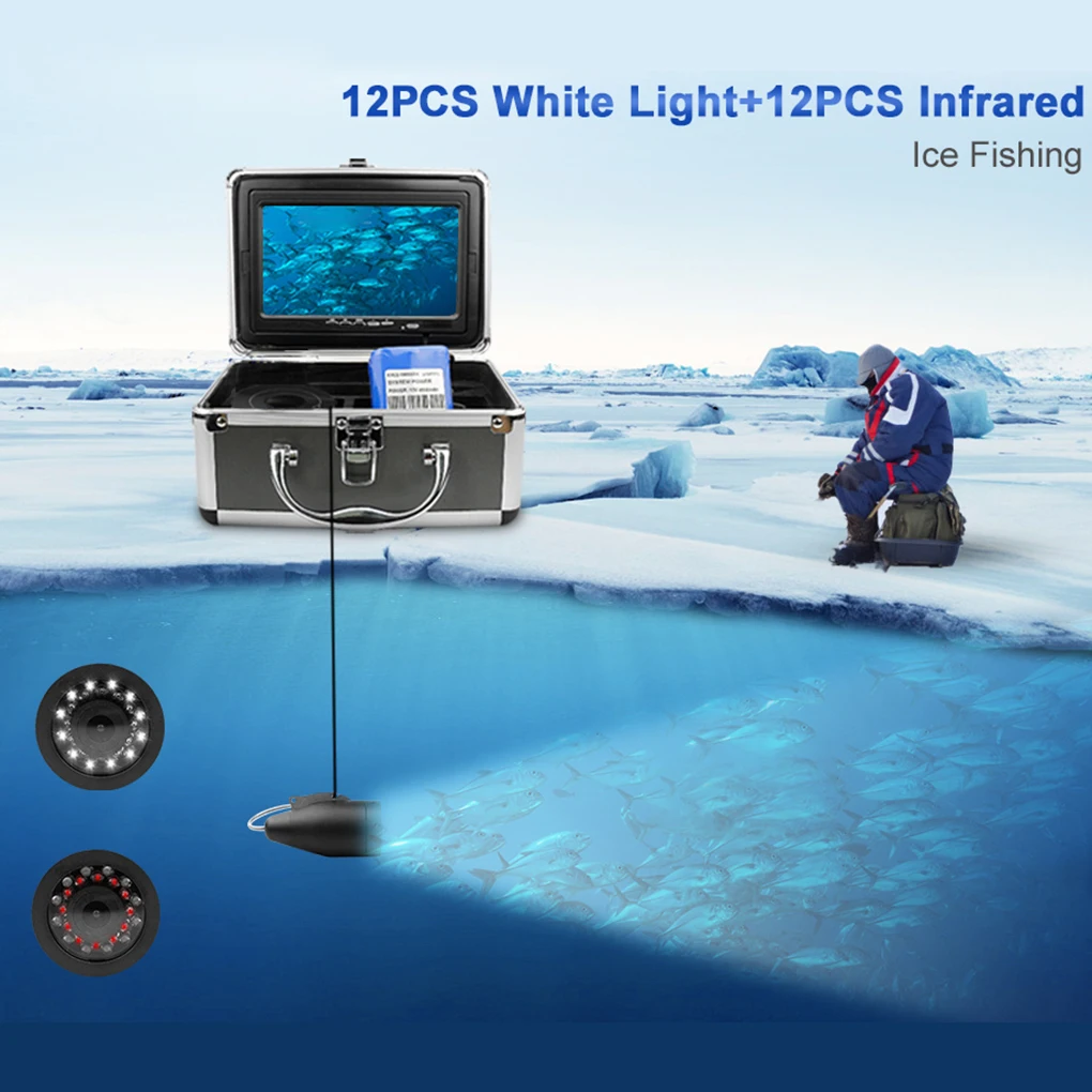 Product Name: HD 1280*720 Buscador De Peces 30M Cámara De Pesca Submarina 7 Pulgadas 12 LEDs Blancos + 12 Piezas Lámpara De Infrarrojos Para Hielo/Mar
