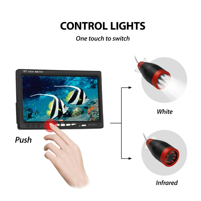 Product Name: Erchang 1000tvl 15m 12 Uds Lámpara De Infrarrojos + 12 Uds Lámpara Blanca Cámara De Pesca Submarina Buscador De Peces