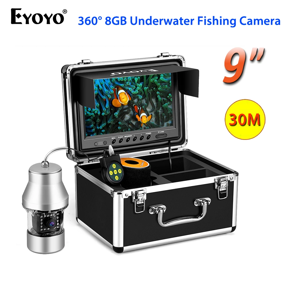 Product Name: Eyoyo-cámara De Vídeo De Pesca Submarina EF360, Grabadora DVR De 9 Pulgadas, 30m, Impermeable IP68, 18 LED, Rotación De 360 Grados