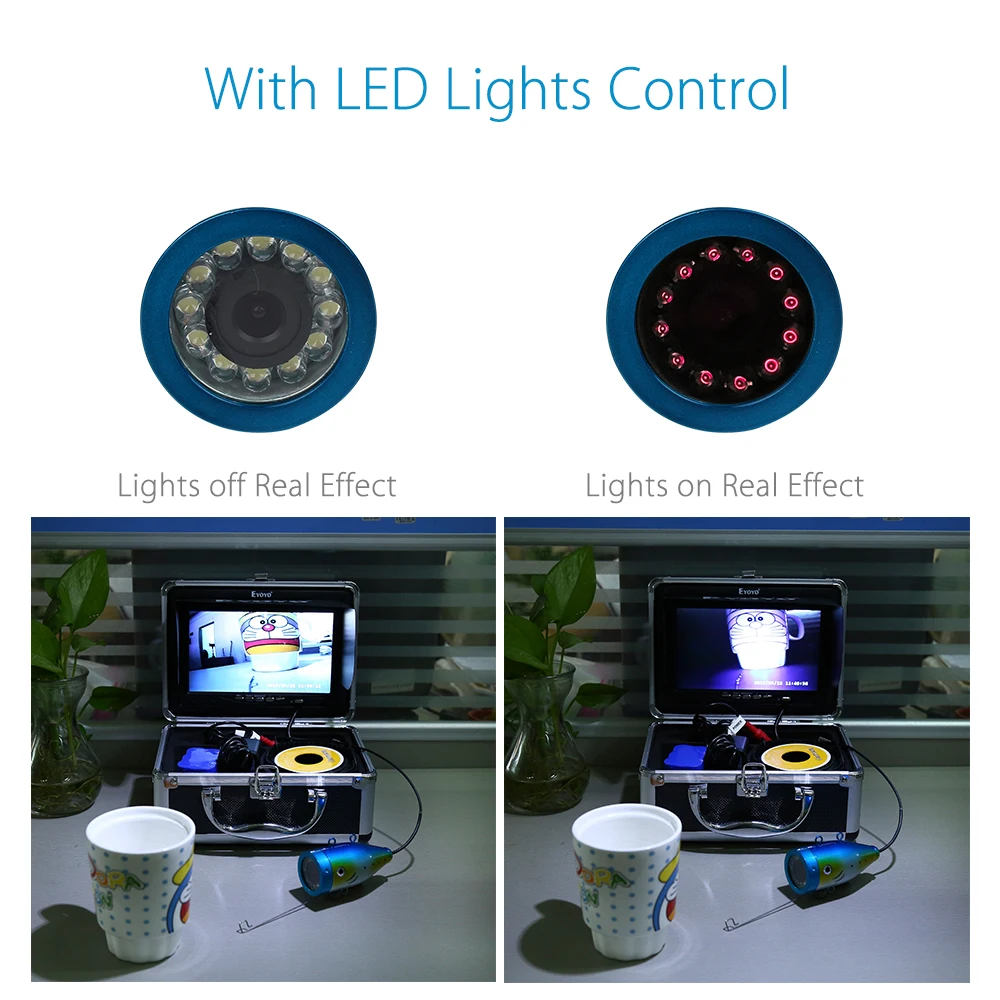 Product Name: Eyoyo EF07PRO 7 Pulgadas 1000TVL Buscador De Peces Cámara De Pesca Submarina DVR Lámpara De Infrarrojos Localizador 12 Uds IR LED + 12 Uds LED Blanco