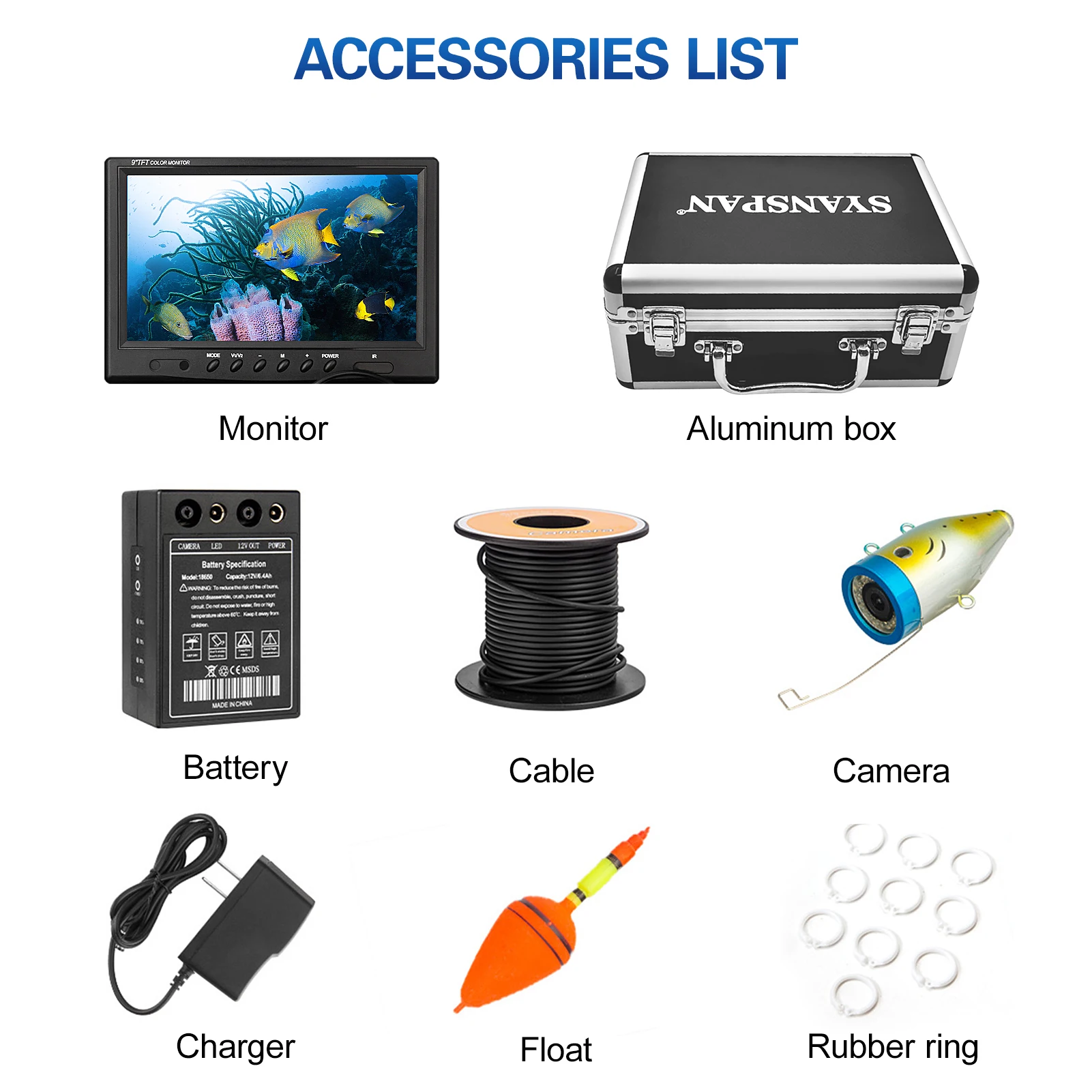 Product Name: Cámara De Pesca Submarina, Buscador De Peces De 9 Pulgadas, 1200TVL, 12 Lámparas LED Infrarrojas De 15M/30M/50M Para Pesca En El Mar Hielo