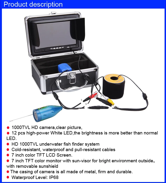 Product Name: WF01 30M Cable Cámara De Pesca Submarina Portátil IP68 Impermeable 7 Pulgadas HD LCD Monitor Buscador De Peces 12 Uds LED IR Infrarrojo