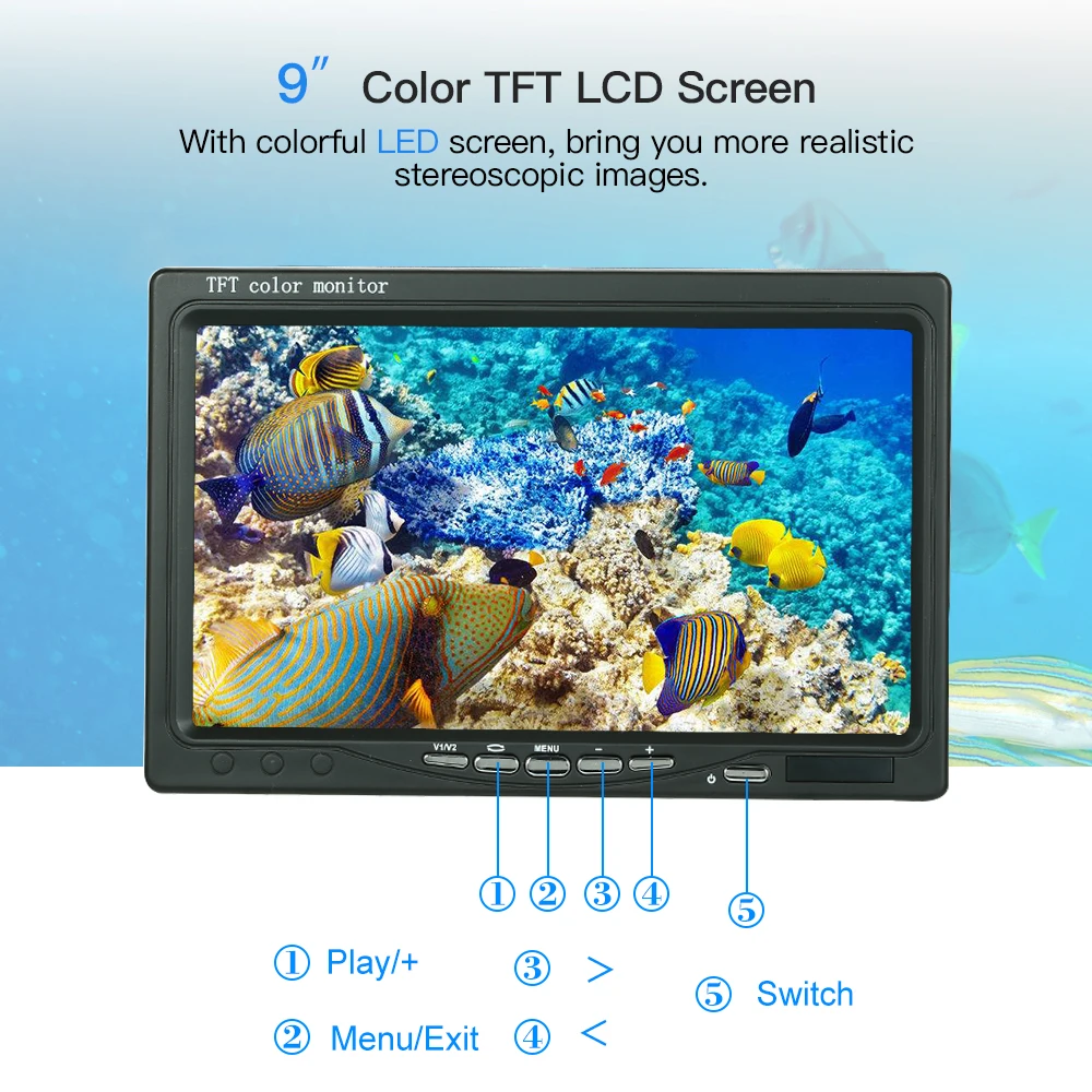 Product Name: Buscador De Peces Cámara Subacuática CÁMARA DE PESCA 9 "pantalla De Color 1000TVL Cámara Infrarroja IR Luces LED Uso De Control Remoto 10 Horas