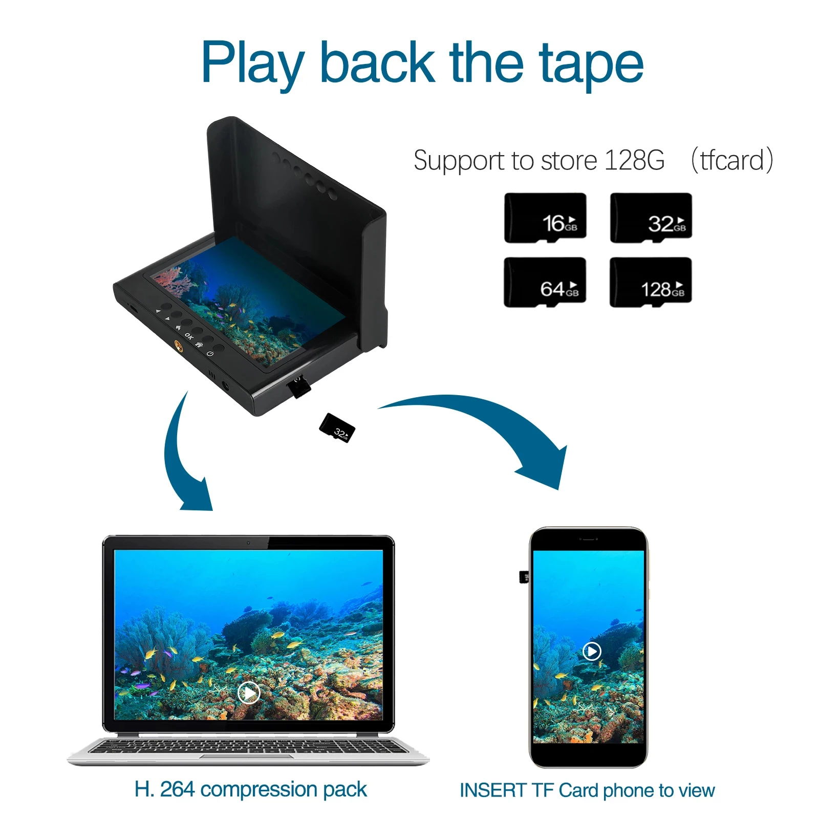 Product Name: Cámara De Pesca Submarina Portátil, Dispositivo Buscador De Peces Real Time1080P, 30fps, 940nm, LED, Impermeable, Con Cable De 30M, 5,0 Pulgadas