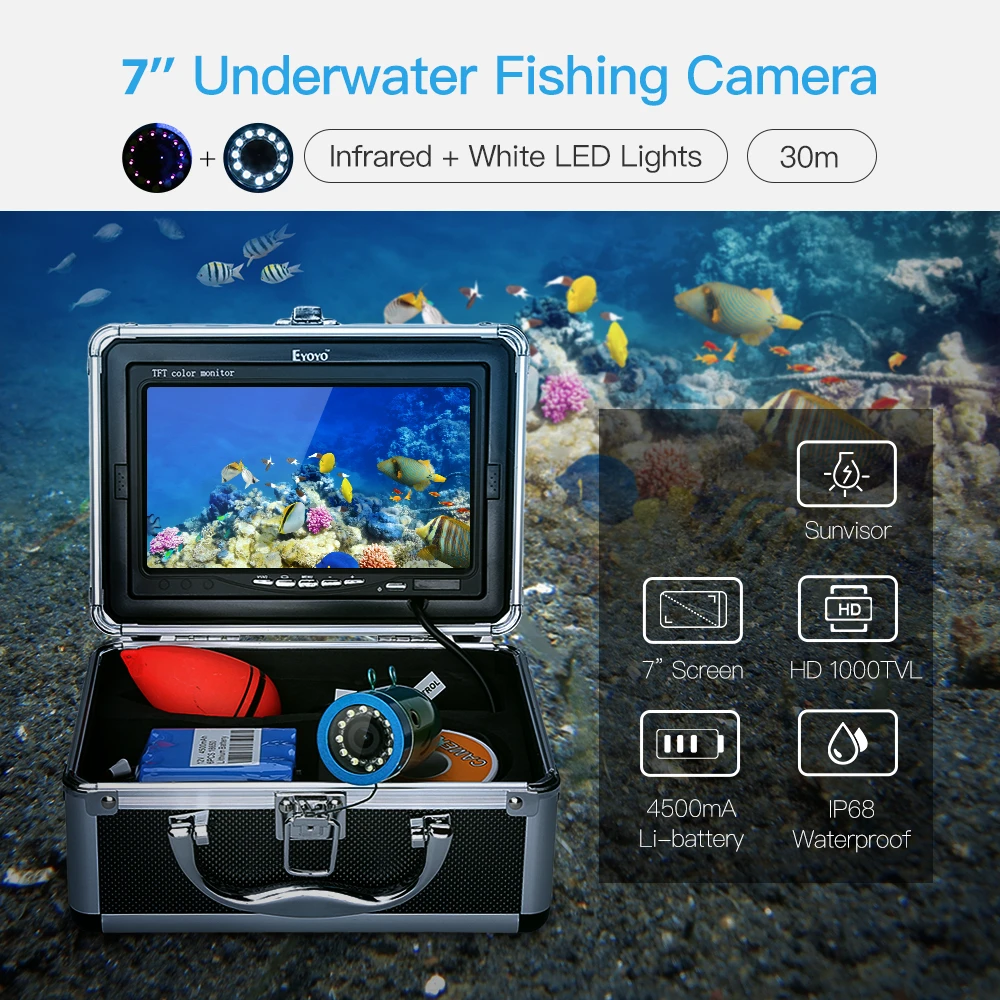 Product Name: Eyoyo-Localizador De Peces Con Pantalla LCD TFT, Detector De Monitor, Cámara De Pesca Submarina, Buscador De Peces, 7 ", 15/30M, IR + Luces LED Blancas