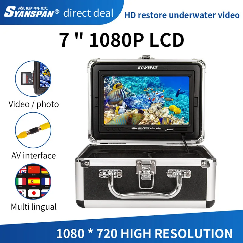 Product Name: Kit De Cámara De Vídeo De Pesca Submarina, Buscador De Peces Con Lámpara LED Blanca De 7 Pulgadas, TFT HD, 1000tvl, 12 Uds., 15M, 30M, 50M