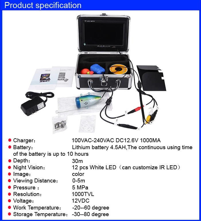 Product Name: WF01 30M Cable Cámara De Pesca Submarina De 7 Pulgadas Para El Lago, Barco De Mar Kayak De Pesca Con Caja De Herramientas 30M Cable