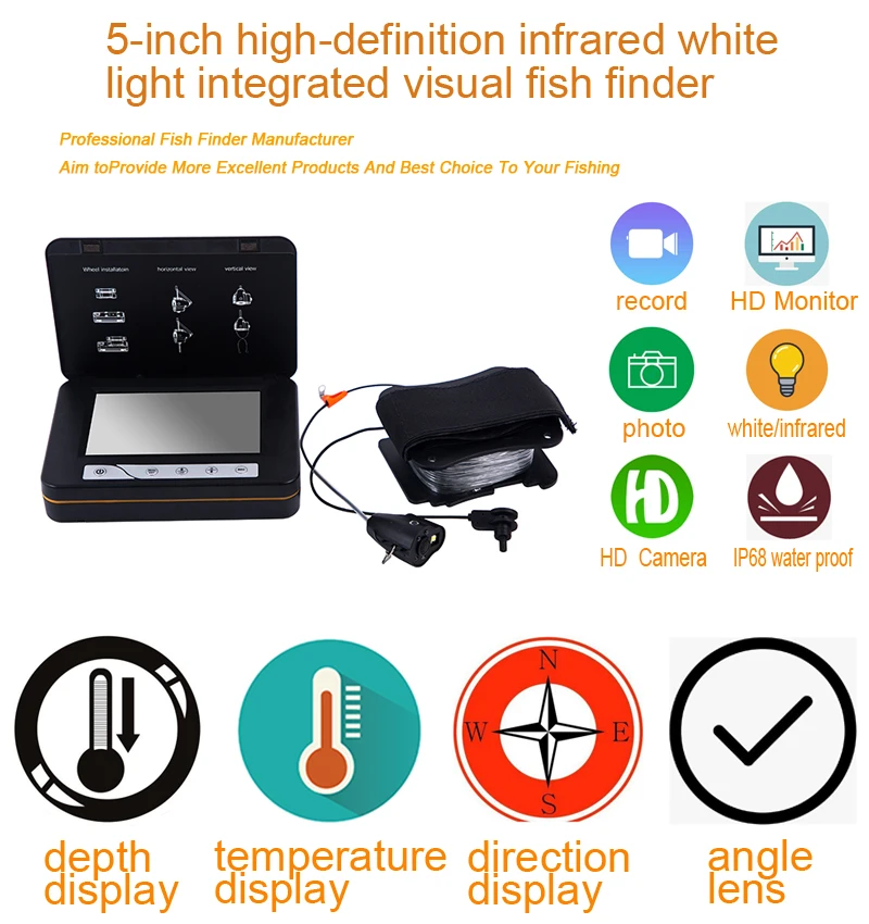 Product Name: Buscador De Peces De 5 Pulgadas, Cámara De Pesca, Vídeo, Buscador De Peces Bajo El Agua Con Grabación De Vídeo, Cámara De Pesca En Hielo, Pantalla De Profundidad De Temperatura